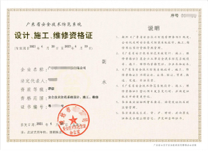 廣東省安全技術(shù)防范系統(tǒng)設(shè)計施工維修許可證
